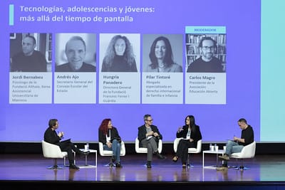 ‘Los juzgados de violencia contra la infancia y la adolescencia’ con PilarTintore presidenta Sección Derecho Infancia y Adolescencia ICAB, Catalina Perazzo directora de incidencia social y política SaveChildrenEs y Tomàs Luis magistrado.